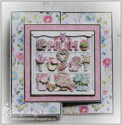 I have the digital collection of these papers so I could print several copies of this fabulous image. I fussy cut three layers and popped them up using foam pads. I also printed the little banner a bit larger and fussy cut it to attach across the top right corner. The sentiment is from one of Lisa Horton Crafts Wordage Sheets, I distressed it so that it would fit with the rest of the card.